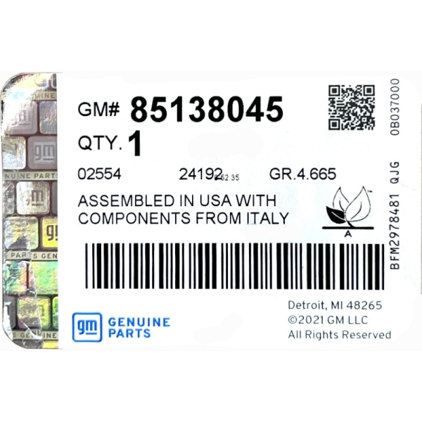 Номер по каталогу General Motors: